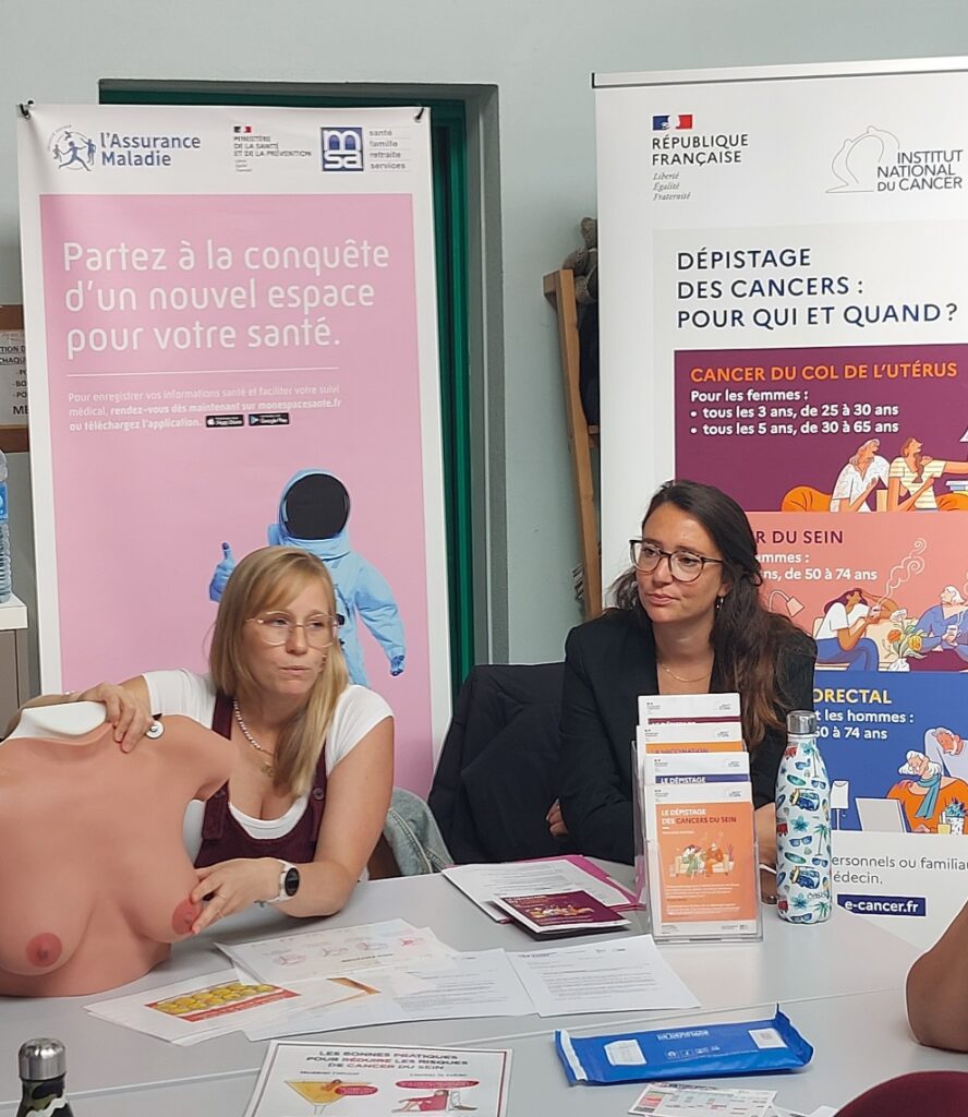 Nous sommes ravis d’avoir accueilli Mme Claire FONTENIT (Chargée de projet Éducation Santé – Service Prévention) et Mme Claire Ducamp (sage-femme) pour un atelier essentiel sur les dépistages des cancers qui concernent autant les femmes que les hommes.